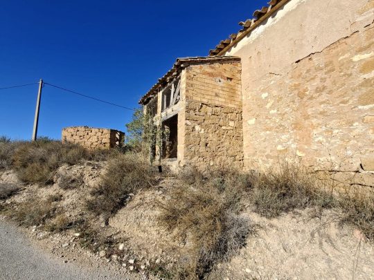 Casa hecha de piedra y adobe, construida en un sitio privilegiado, con unas vistas panorámicas al valle por el que discurre el río Guadalope.