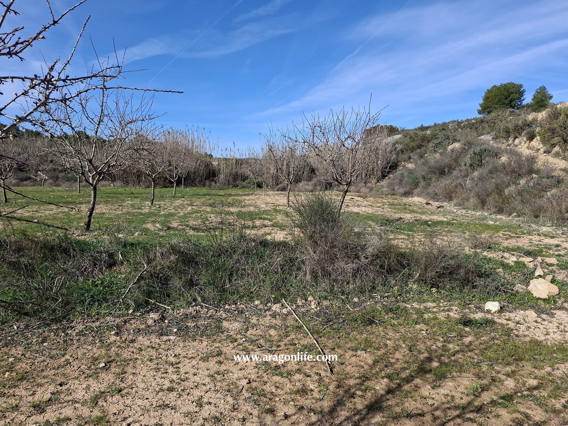 En Aragón se puede pedir permiso para construir un almacén agrícola, que permiten que tenga baño y cocina, a partir de 2.500m2 de terreno, en regadío. En esta finca se podría pedir para unos 25m2 de construcción