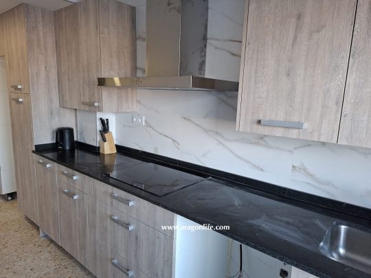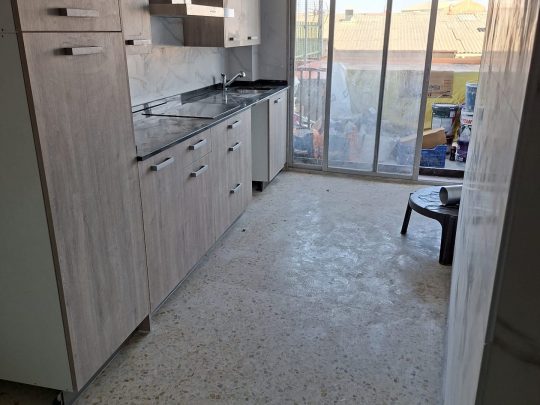 El piso se vende con toda la cocina nueva a estrenar, con aseo con totalmente reformado y con las paredes pintadas. En las fotos aún faltan detalles, pero se entrega el piso acabado.